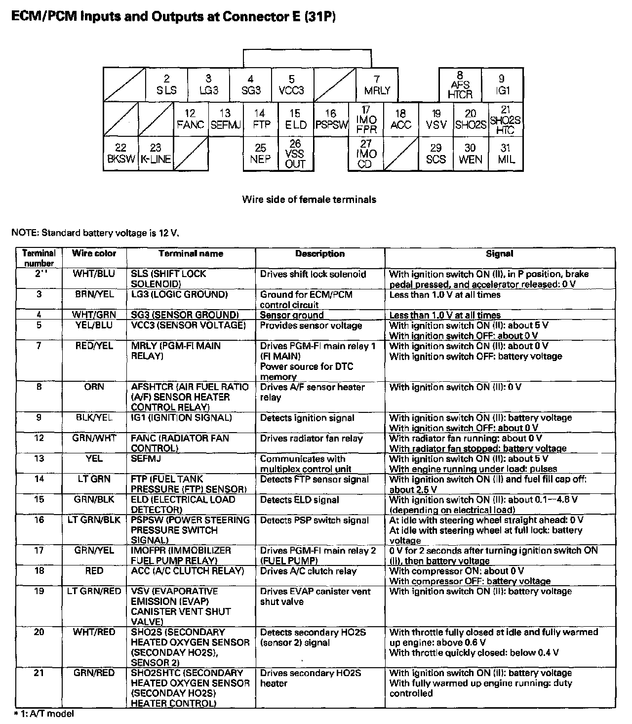 ECM/PCM Inputs And Outputs At Connector E (31P) Part 1: