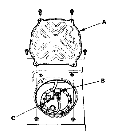 6. Disconnect the quick-connect fitting (C) from the fuel tank unit.