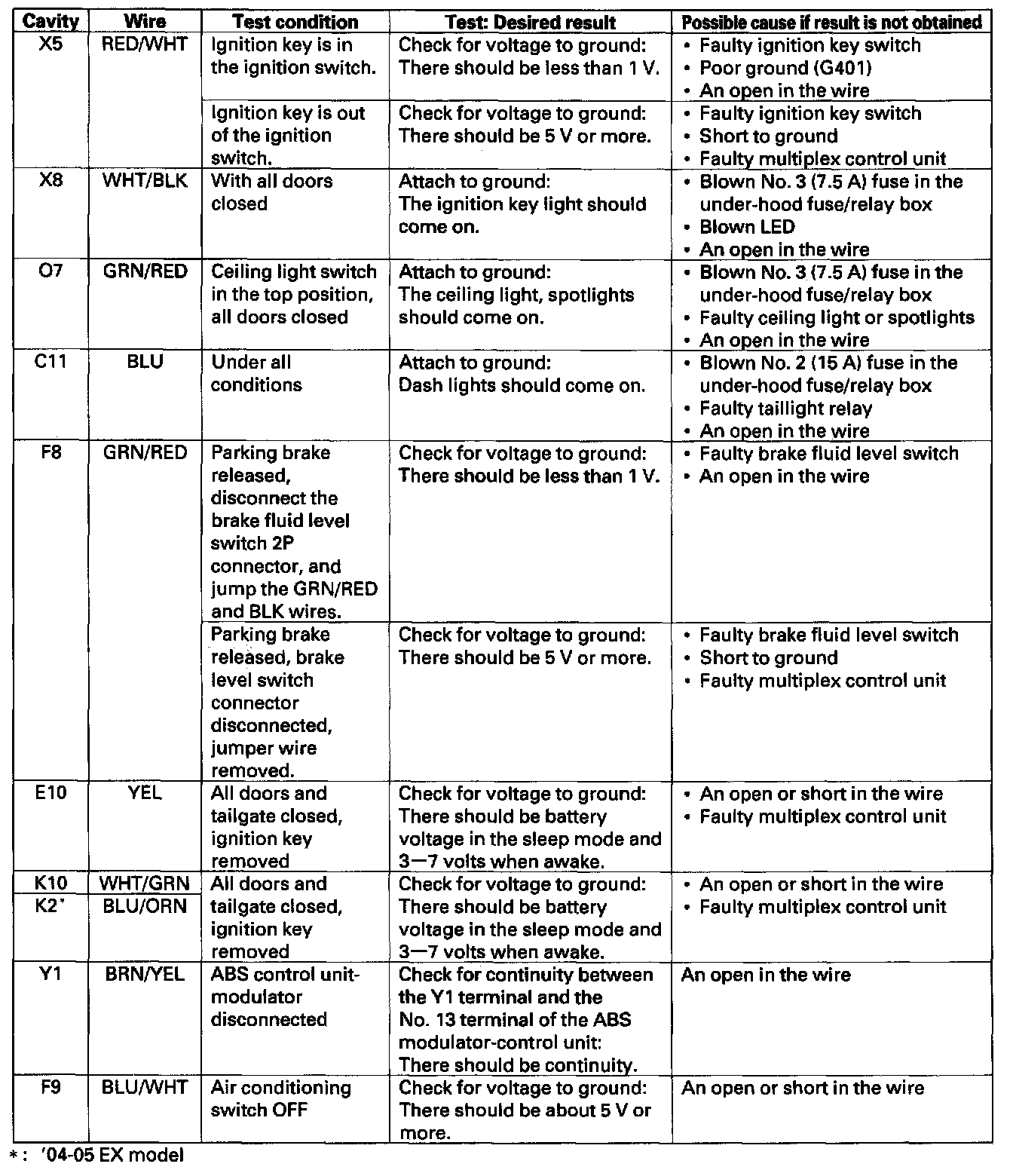 - It all the input tests prove OK, the multiplex control unit must be faulty, replace the under-dash fuse/relay box assembly.