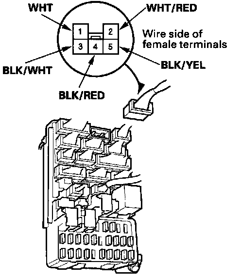 2. Disconnect connector A (5P) from the under-dash fuse/relay box.