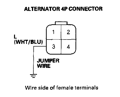 16. Connect alternator 4P connector terminal No.3 and body ground with a jumper wire.