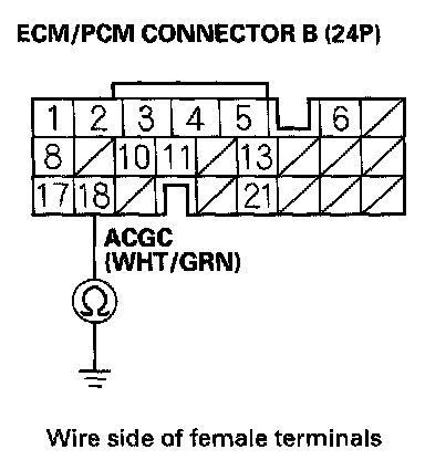 8. Check for continuity between ECM/PCM connector terminal B18 and body ground.