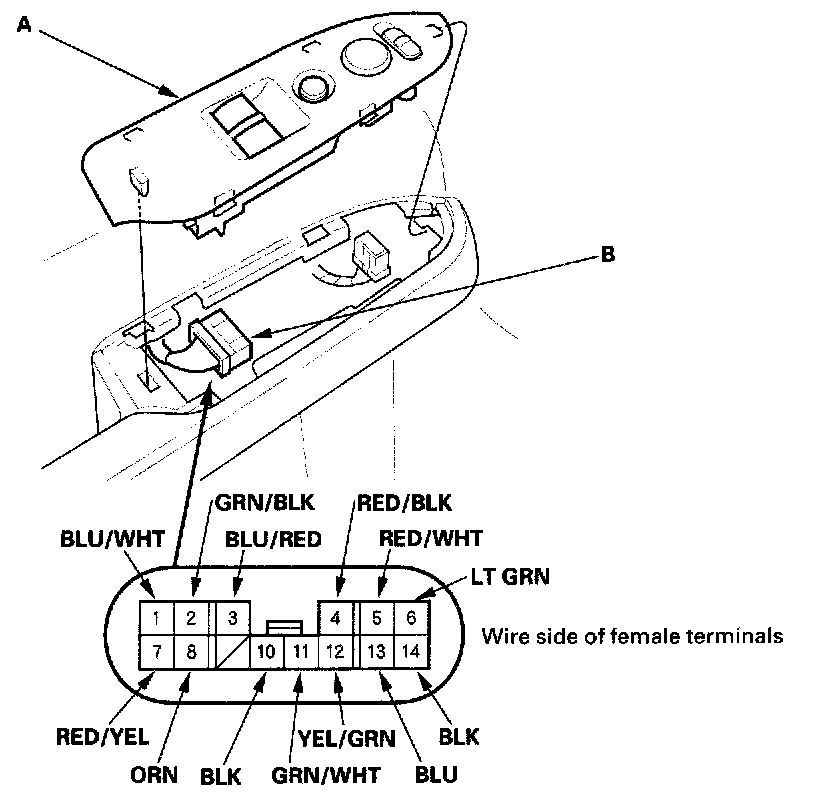 NOTE: The power window control unit is built into the power window master switch, and it only controls the driver's window operations.
