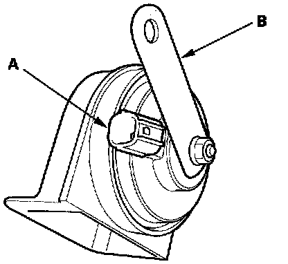 3. Test the horn by connecting battery power to the terminal (A) and ground to the bracket (B). The horn should sound.