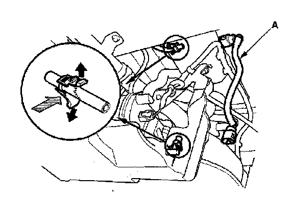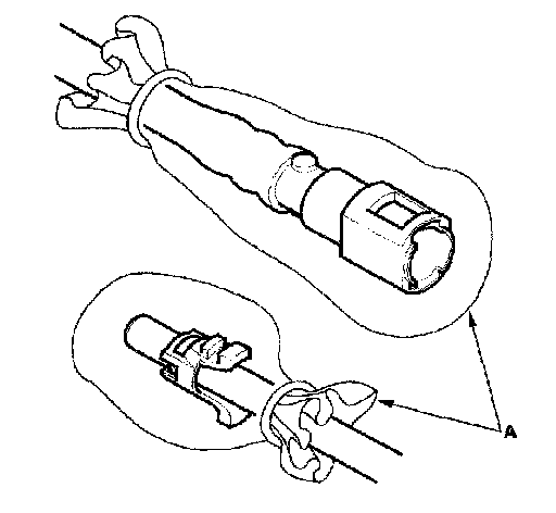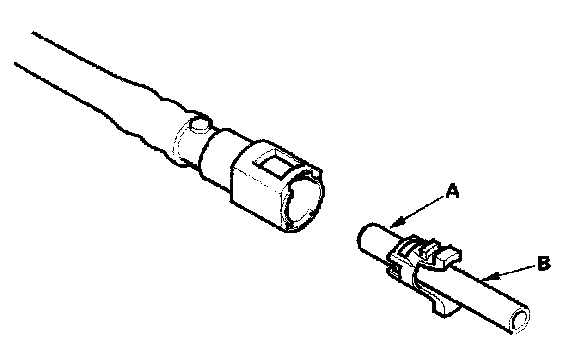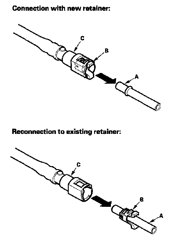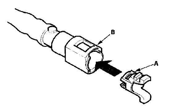 2. Insert a new retainer (A) into the connector (B) if the retainer is damaged, or after: