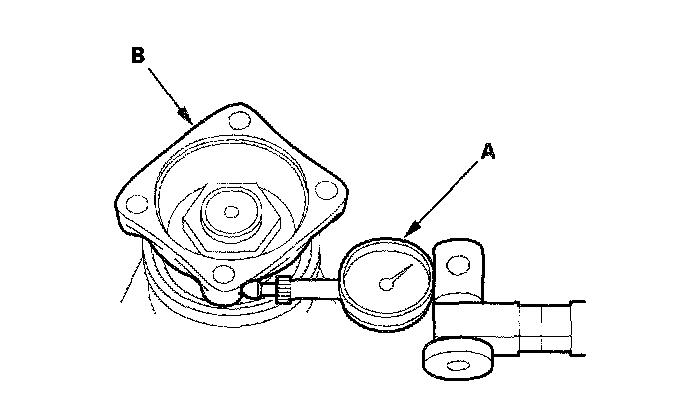 1. Set a dial indicator (A) on the companion flange (B) as shown.