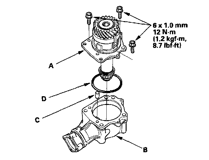 6. Remove the transfer holder assembly (A) from the transfer housing (B), then remove the dowel pin (C) and O-ring (D).