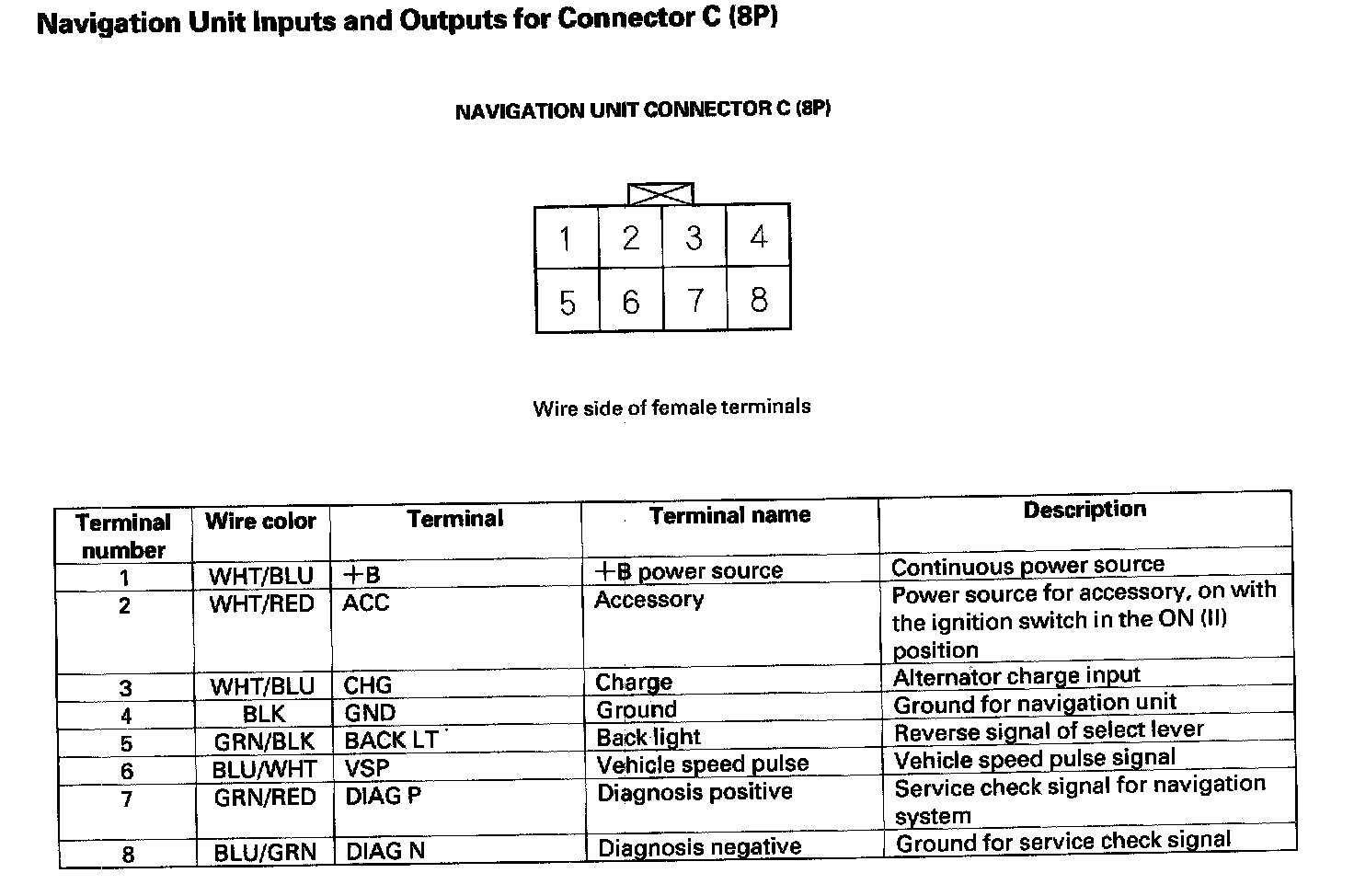 Navigation Unit Inputs And Outputs For Connector C (8P):
