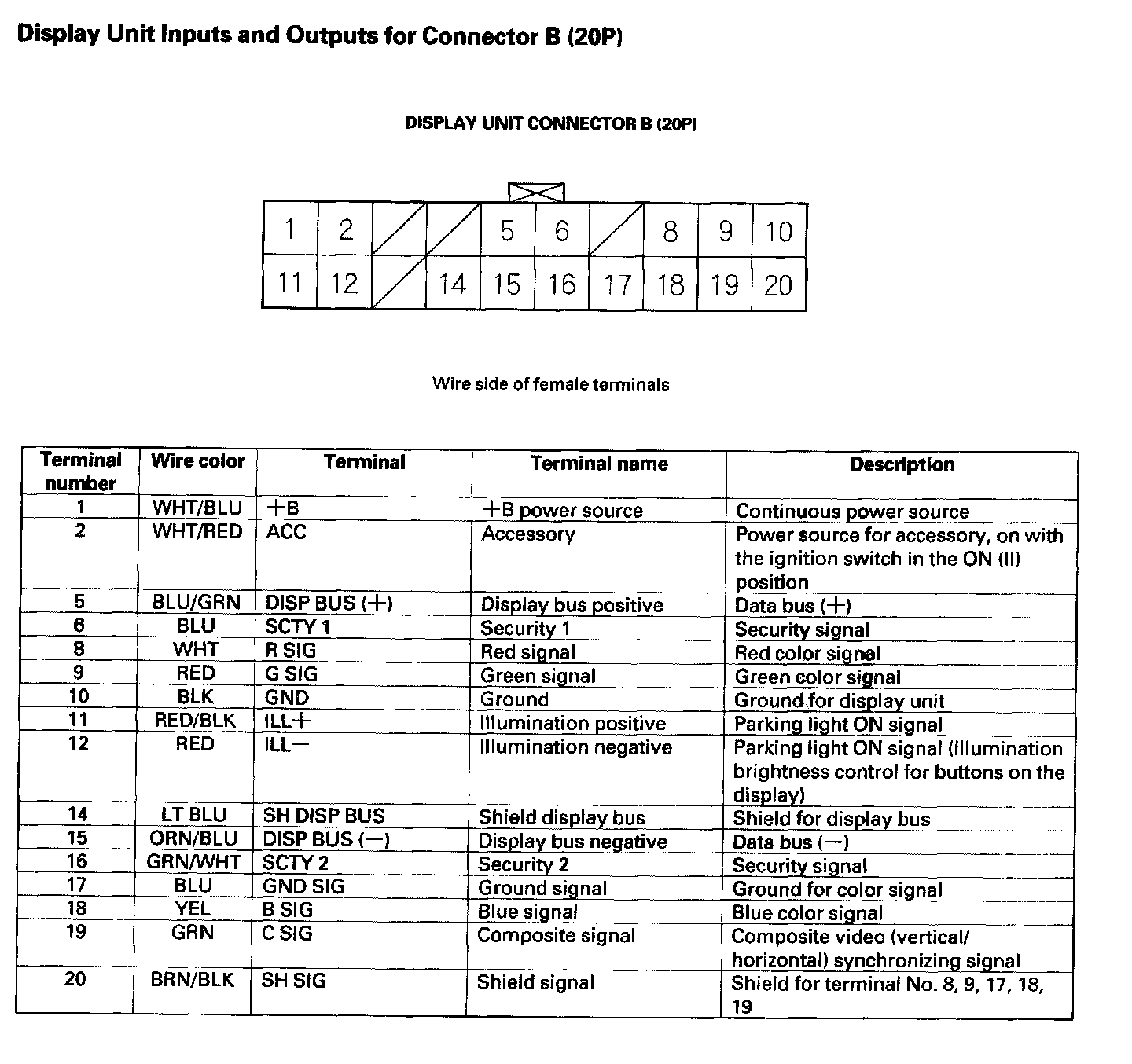 Navigation Unit Inputs And Outputs For Connector B (20P):
