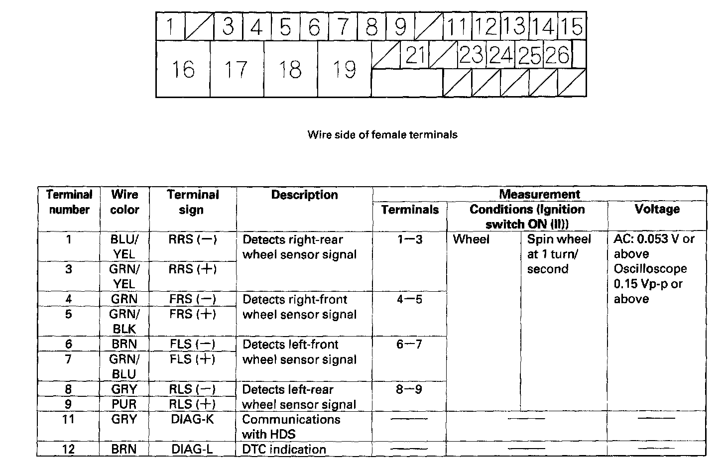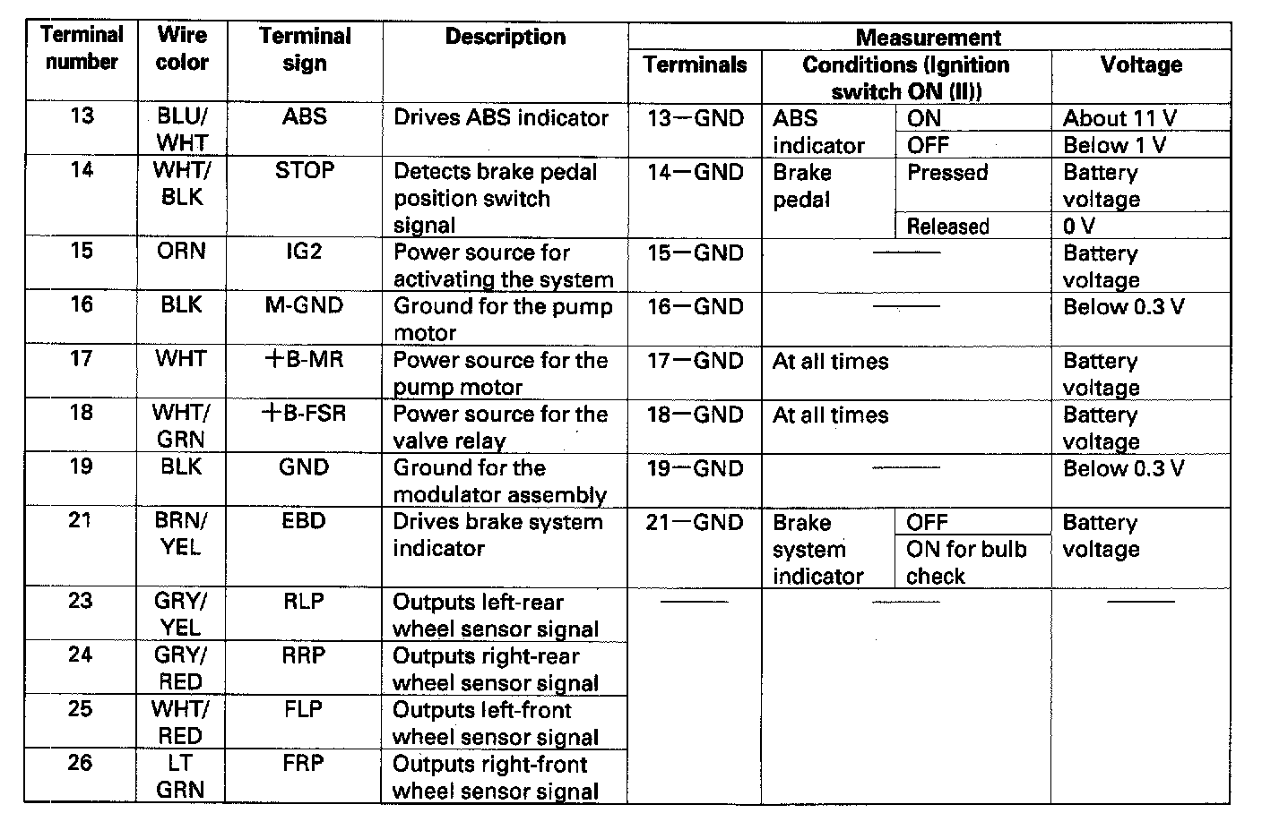 Control Module Pinout Values, ABS