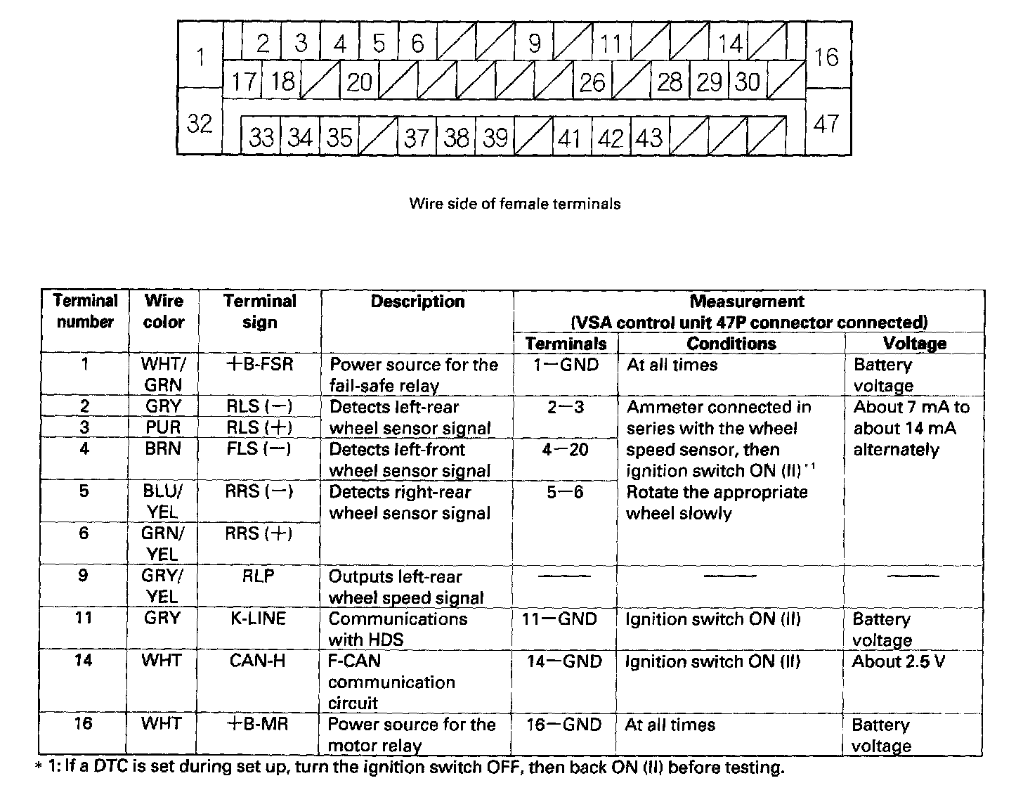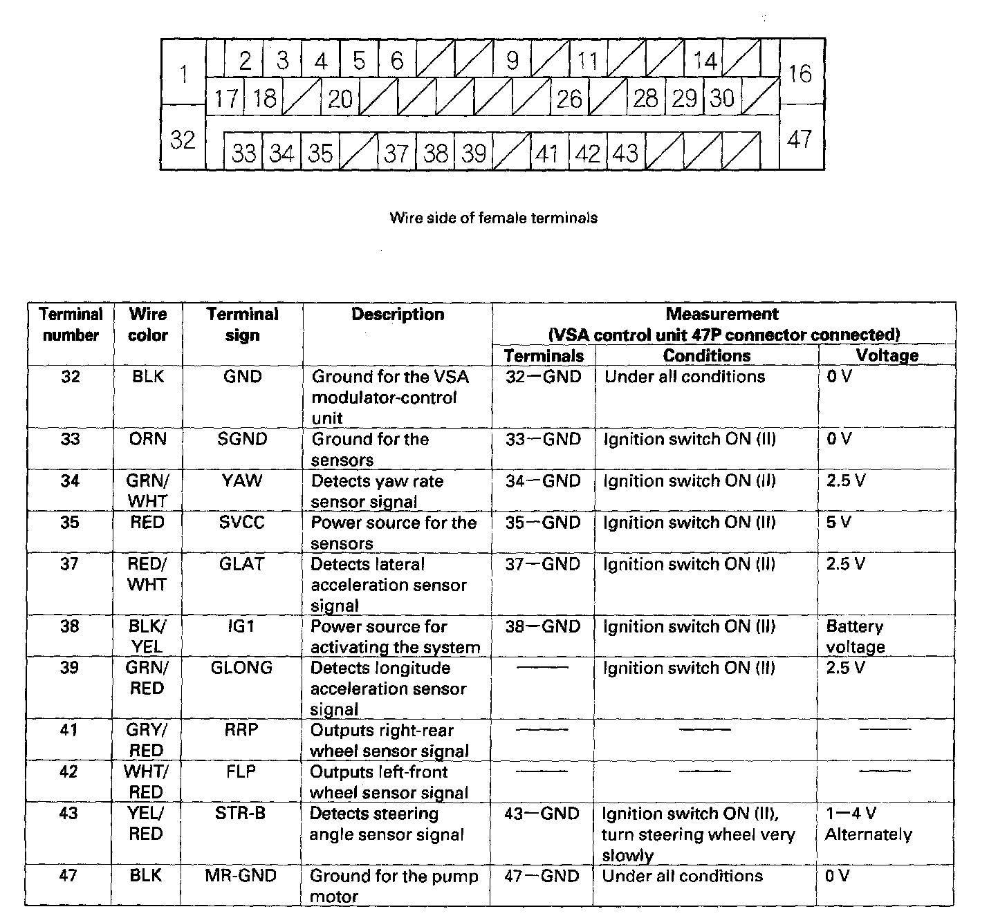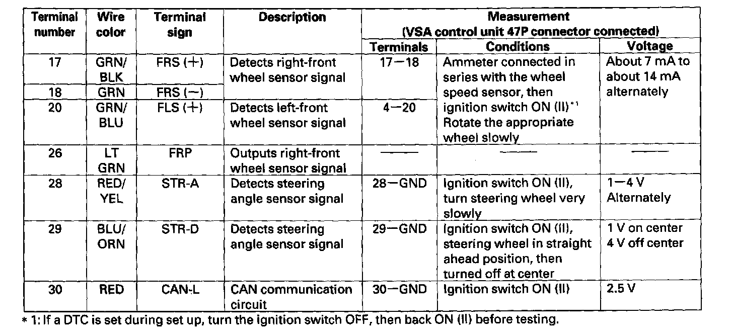 Control Module Pinout Values, VSA