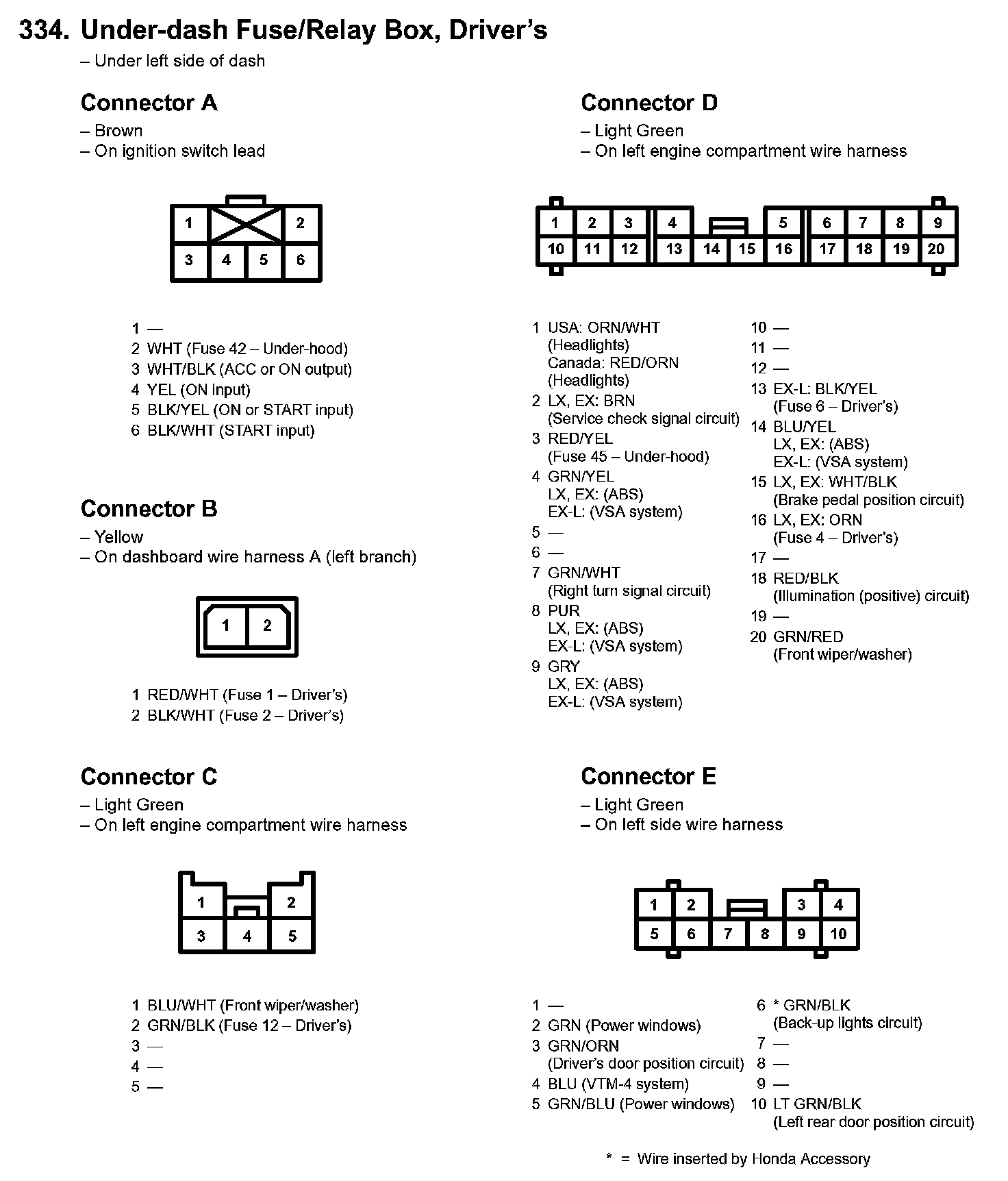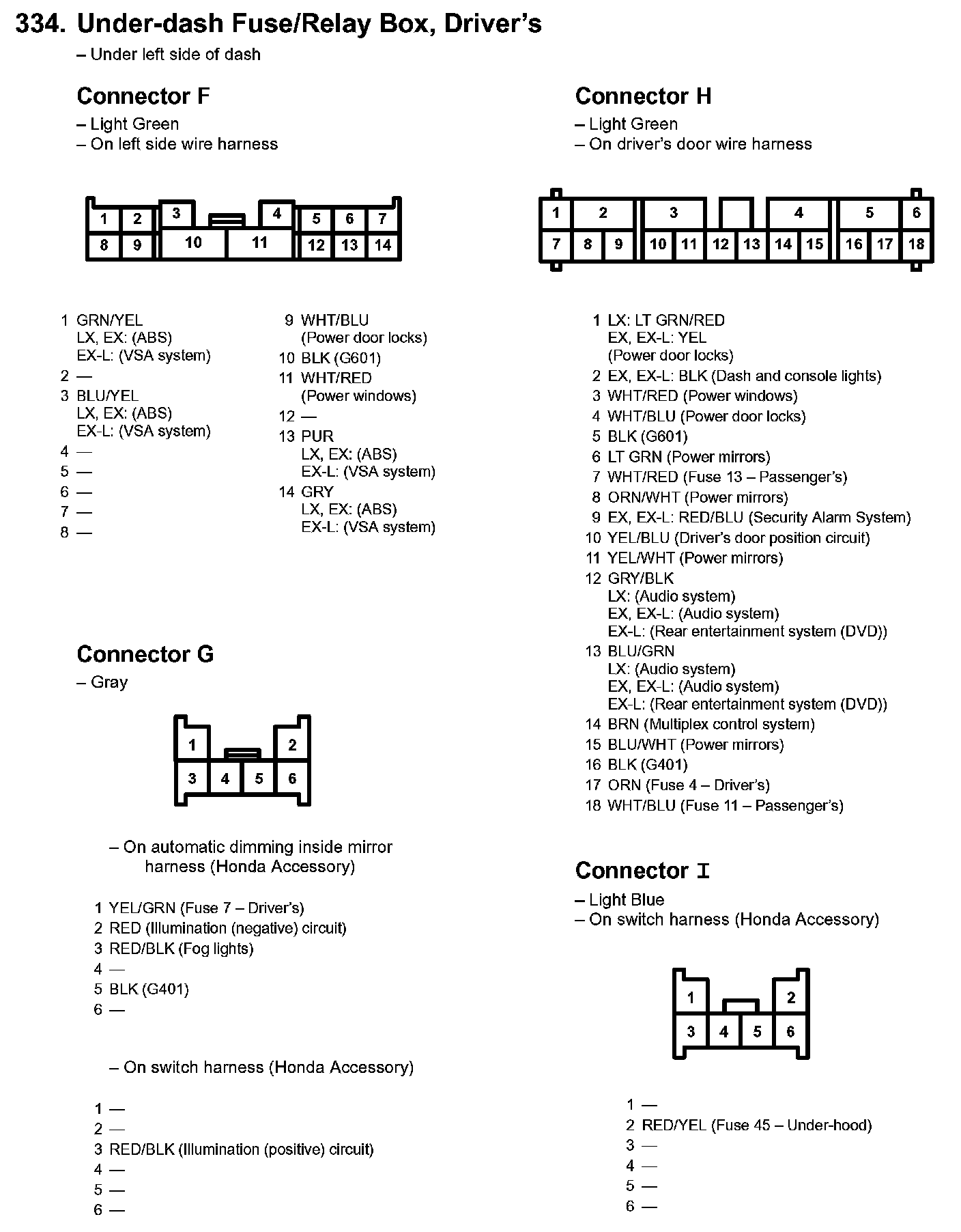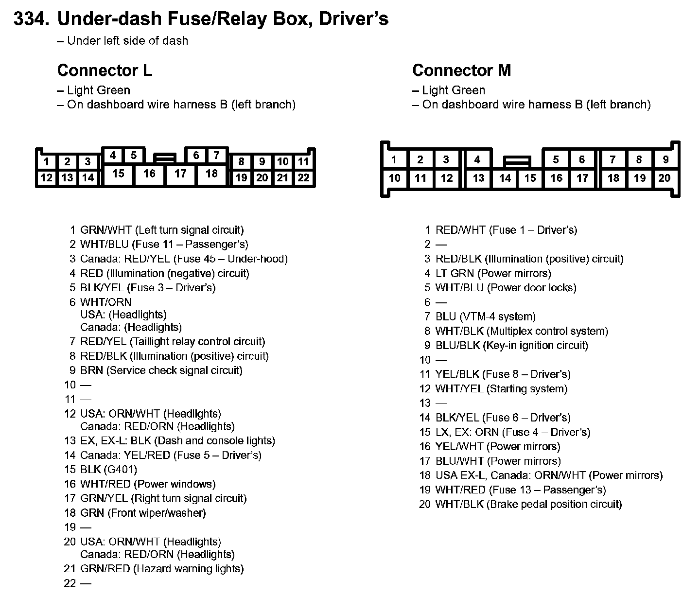 334. Under-dash Fuse/Relay Box, Driver's Part 5: