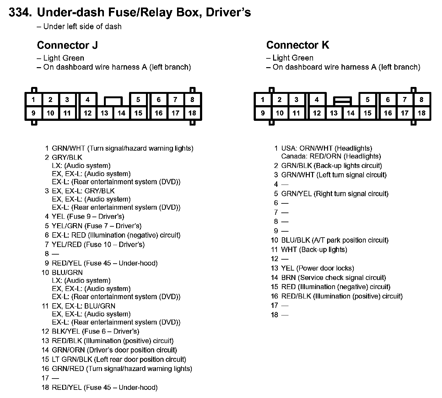 334. Under-dash Fuse/Relay Box, Driver's Part 1: