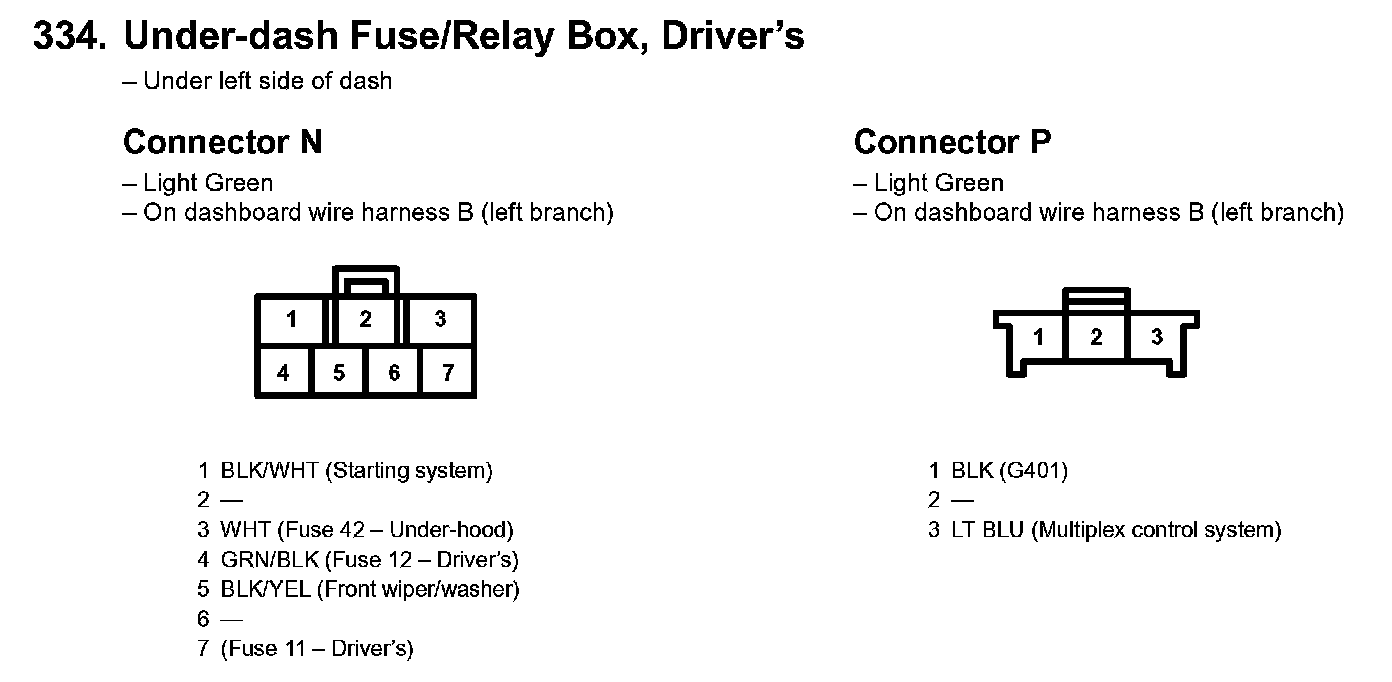 334. Under-dash Fuse/Relay Box, Driver's Part 3: