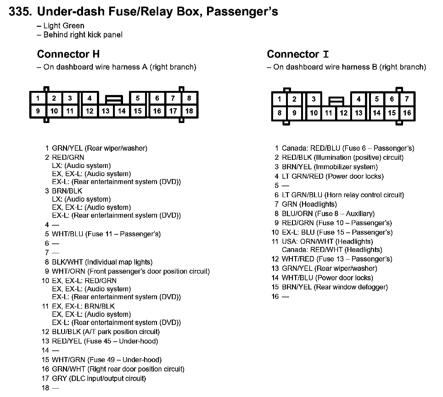 335. Under-dash Fuse/Relay Box, Passenger's Part 2: