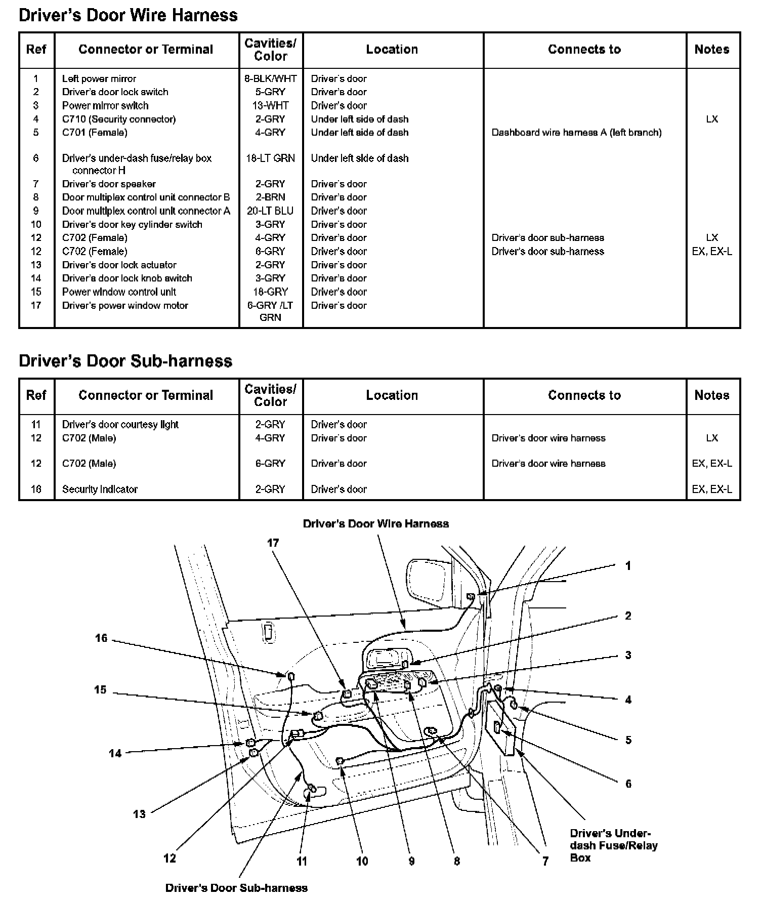 Driver's Door Wire Harness/Driver's Door Sub-harness: