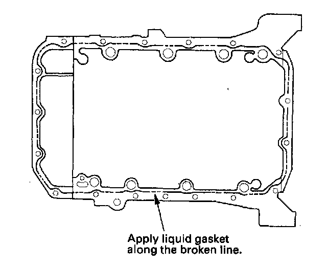 3. Apply liquid gasket, P/N 08717-0004, 08718-0001, 08718-0003, or 08718-009, evenly to the oil pan mating surface of the engine block.