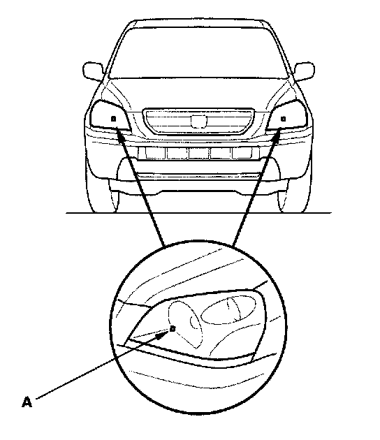 1. Clean the outer lens so that you can see the center of the headlights (A).