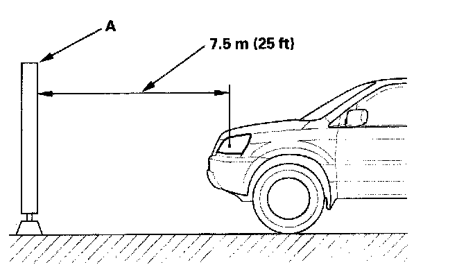 2. Park the vehicle 7.5 m (25 ft) away from a wall or a screen (A).