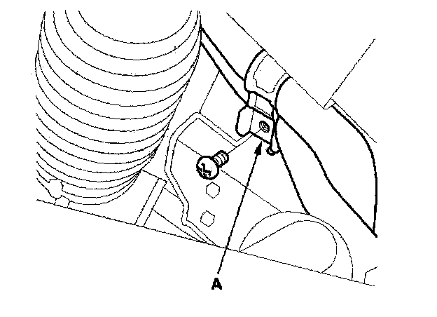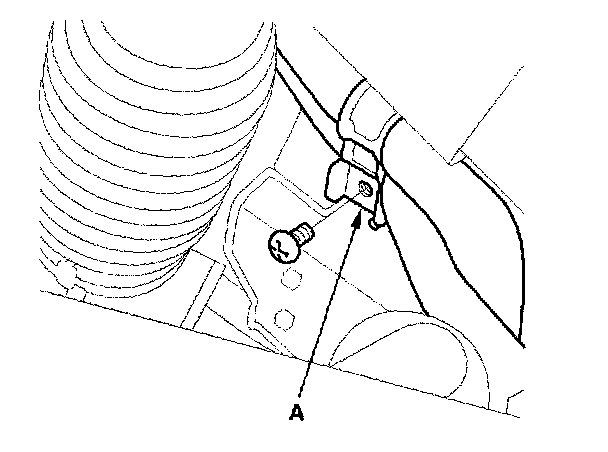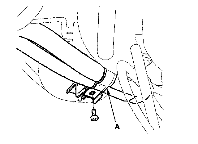 6. Remove the screw from the A/C line clamp (A) next to the steering rack.