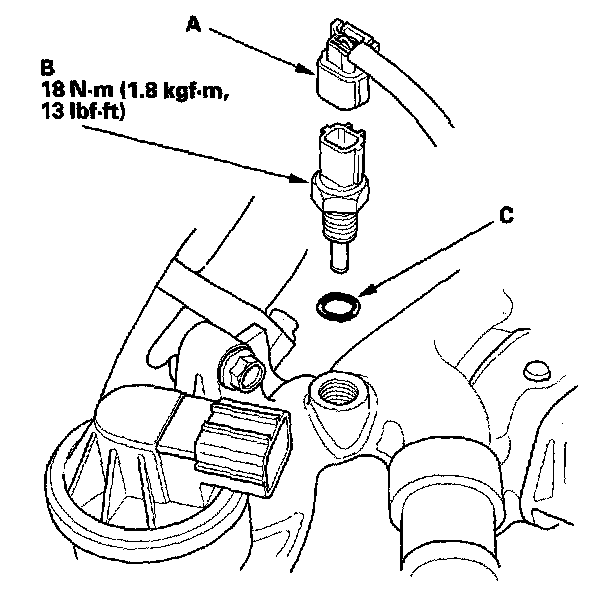 5. Install the sensor in the reverse order of removal with a new O-ring (C), then refill the radiator with engine coolant, and bleed air from the cooling system with the heater valve open.