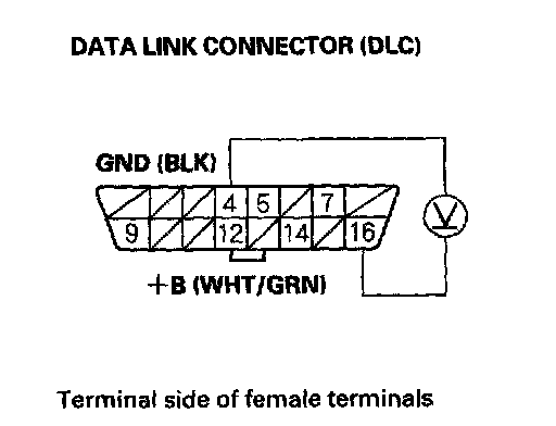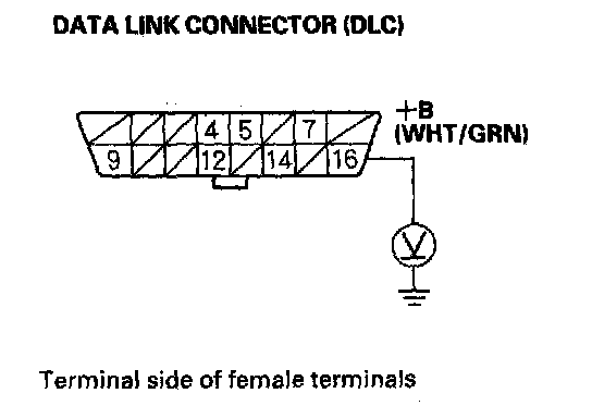 1. Measure voltage between DLC terminal No.16 and body ground.