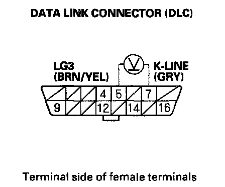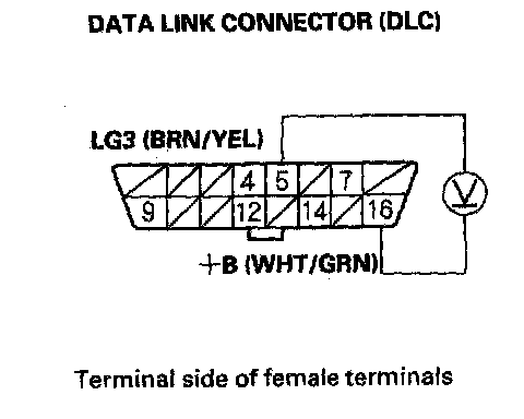 3. Measure voltage between DLC terminals No.5 and No.16.