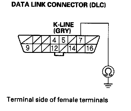 13. Check for continuity between DLC terminal No.7 and body ground.