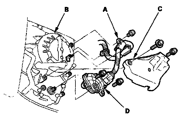 6. Remove the transmission range switch cover (C), then remove the transmission range switch (D) from the end cover.