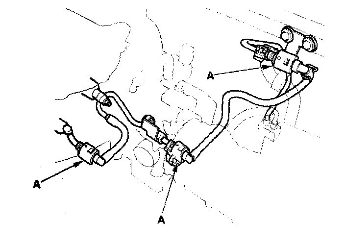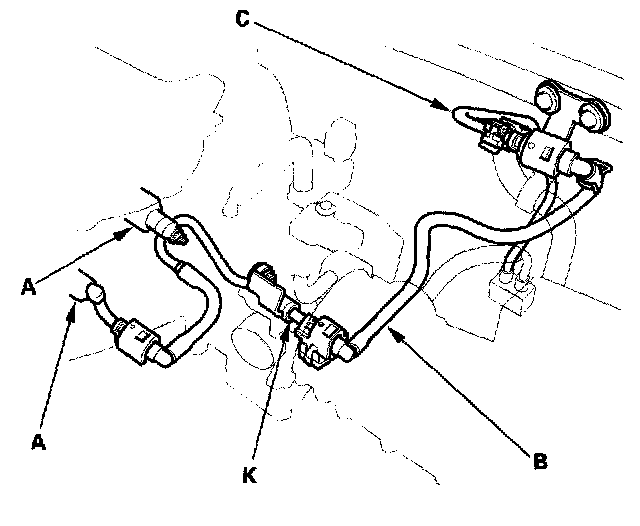 Fuel Line/Quick-Connect Fitting PrecautionThe fuel line/quick-connect fittings connect the fuel rail (A) to the fuel feed joint (K), the fuel feed joint (K) to the fuel feed hose (B) the fuel hose (B) to the fuel line (C), the fuel feed hose (D) to the fuel tank unit (E), the fuel line (F) to the fuel feed hose (G), the EVAP purge pipe (H) to EVAP purge hose (I), and the EVAP purge hose (I) to the EVAP canister (J). When removing or installing the fuel feed hose, fuel tank unit or fuel tank, it is necessary to disconnect or connect the quick-connect fittings.
