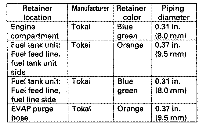A disconnected quick-connect fitting can be reconnected, but the retainer on the mating line cannot be reused once it has been removed from the line. Replace the retainer when: