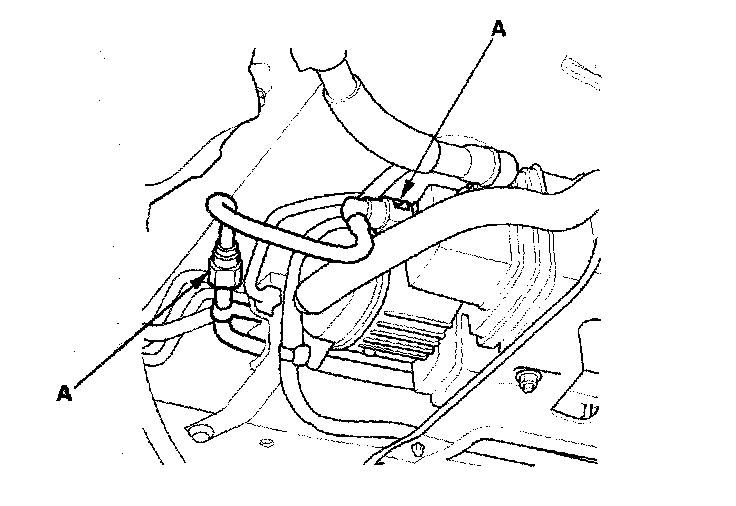 5. To prevent damage and keep foreign matter out, cover the disconnected connector and line ends with plastic bags (A).