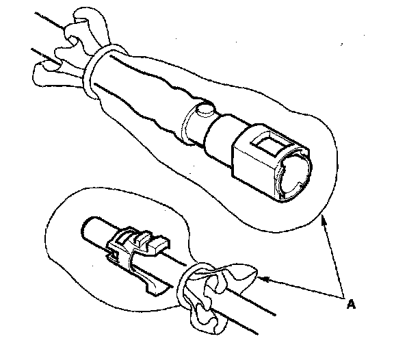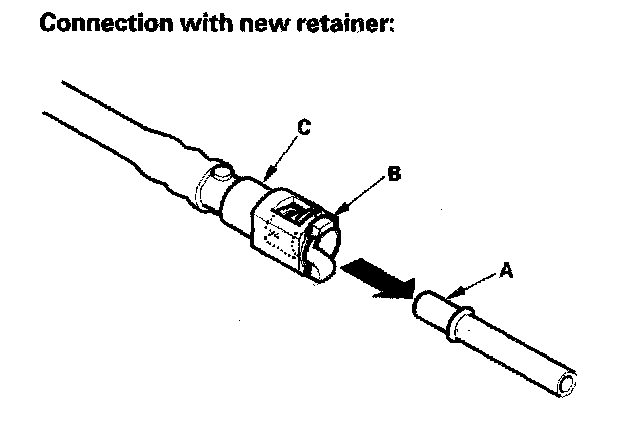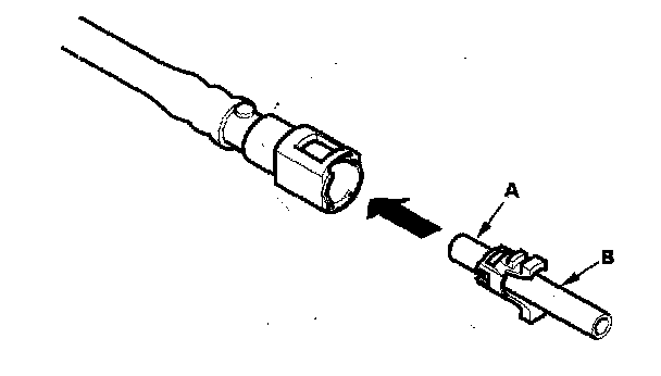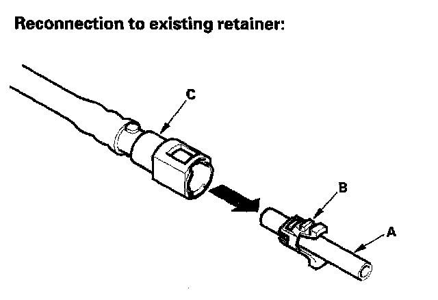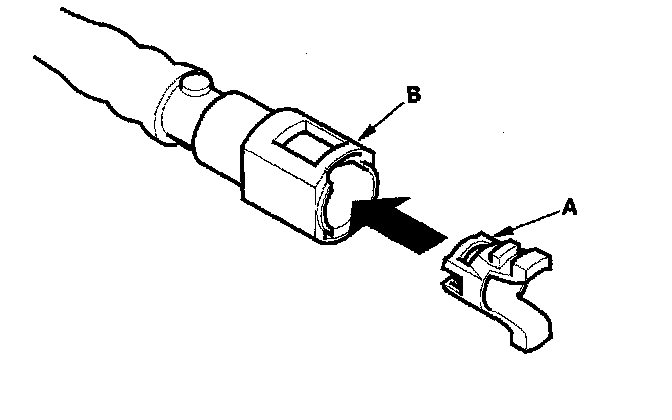 2. Insert a new retainer (A) into the connector (B) if the retainer is damaged, or after: