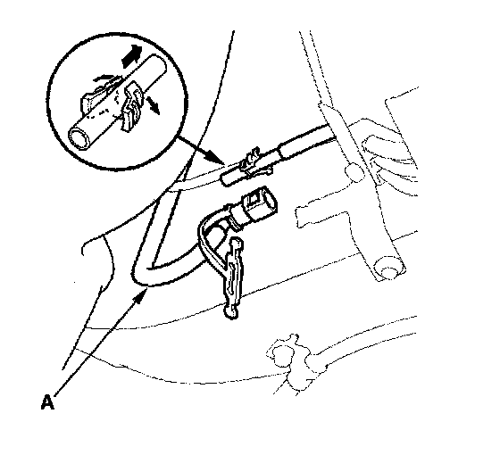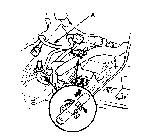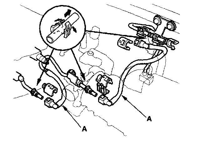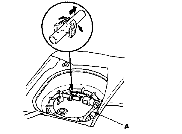 3. Before connecting a new fuel tube/quick-connect fitting assembly (A), remove the old retainer from the mating line.