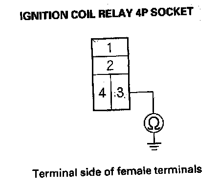 5. Check for continuity between ignition coil relay 4P socket terminal No. 3 and body ground.