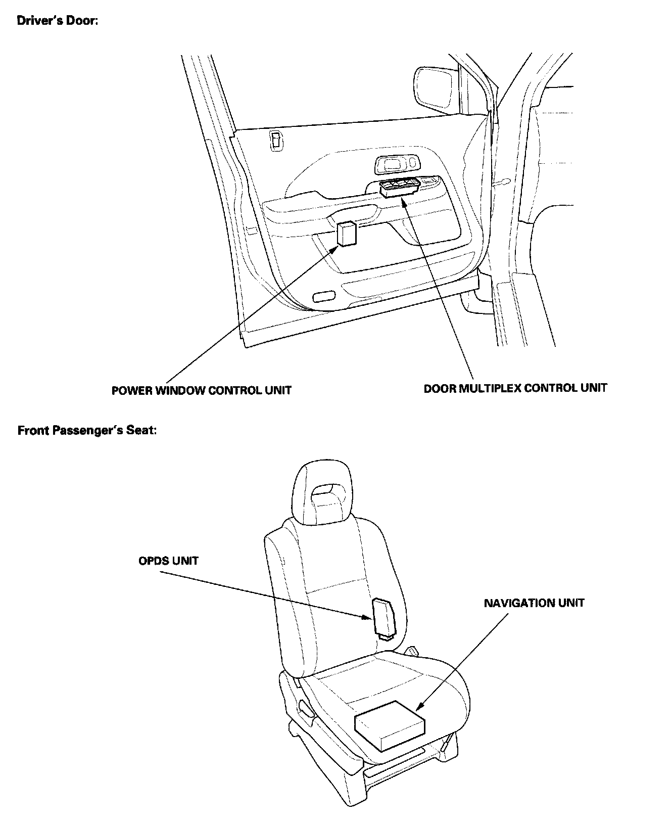Relay And Control Unit Locations - Door And Seat: