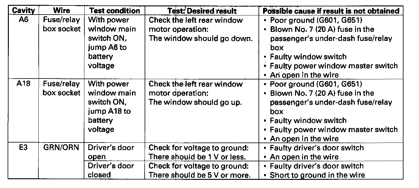 NOTE: For the terminals A4, A5, A10, A11, and A14, refer to the power window control unit input test.