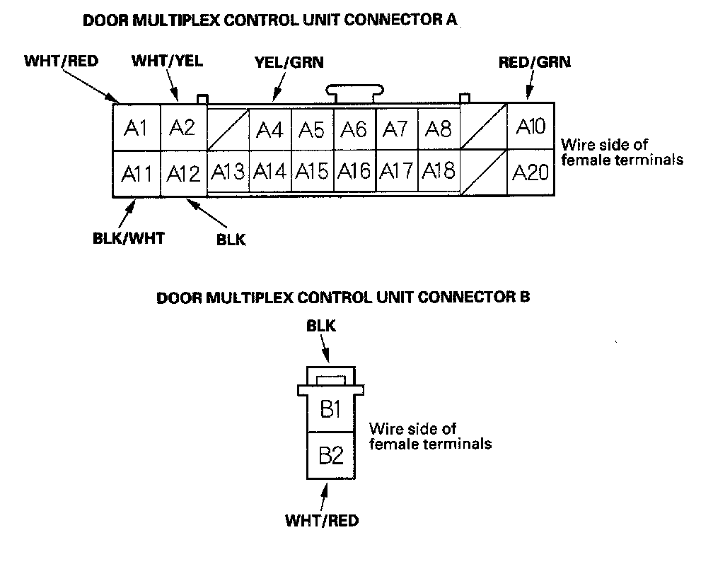 12. Reconnect the connector to the door multiplex control unit, and make these input tests at the connectors.
