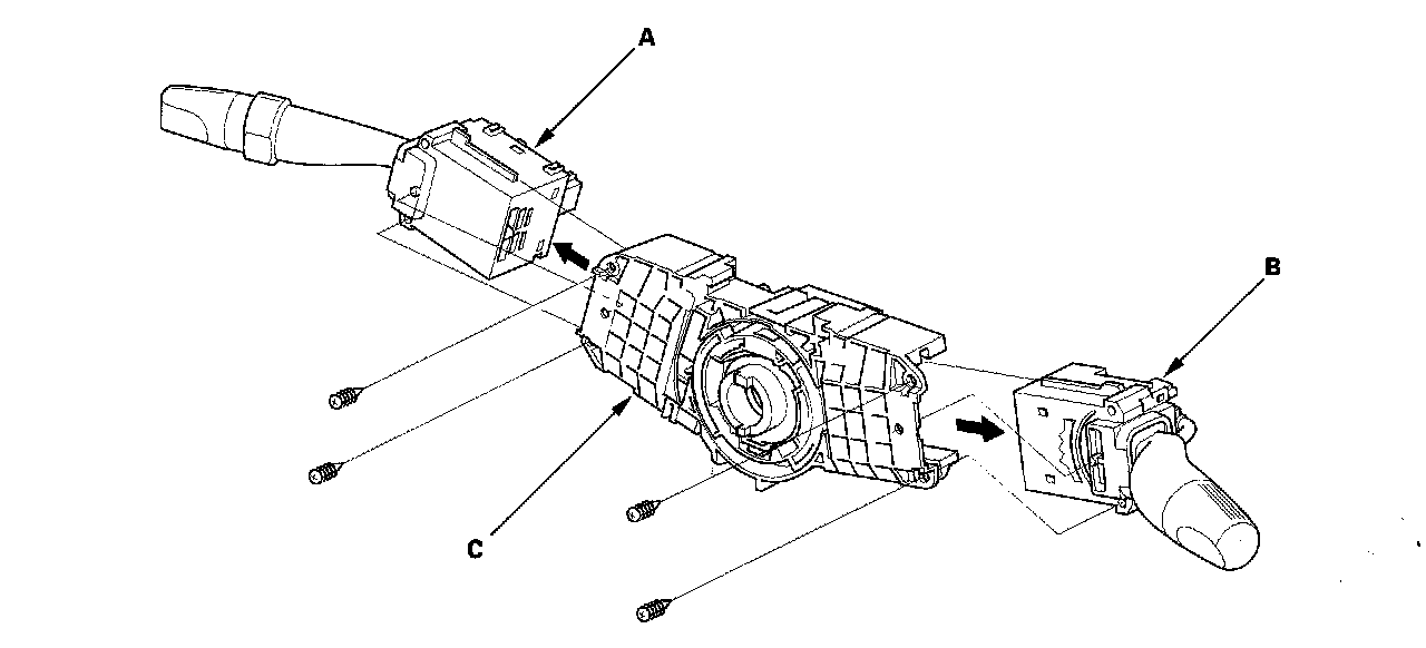 4. Replace the combination switch body complete (C).