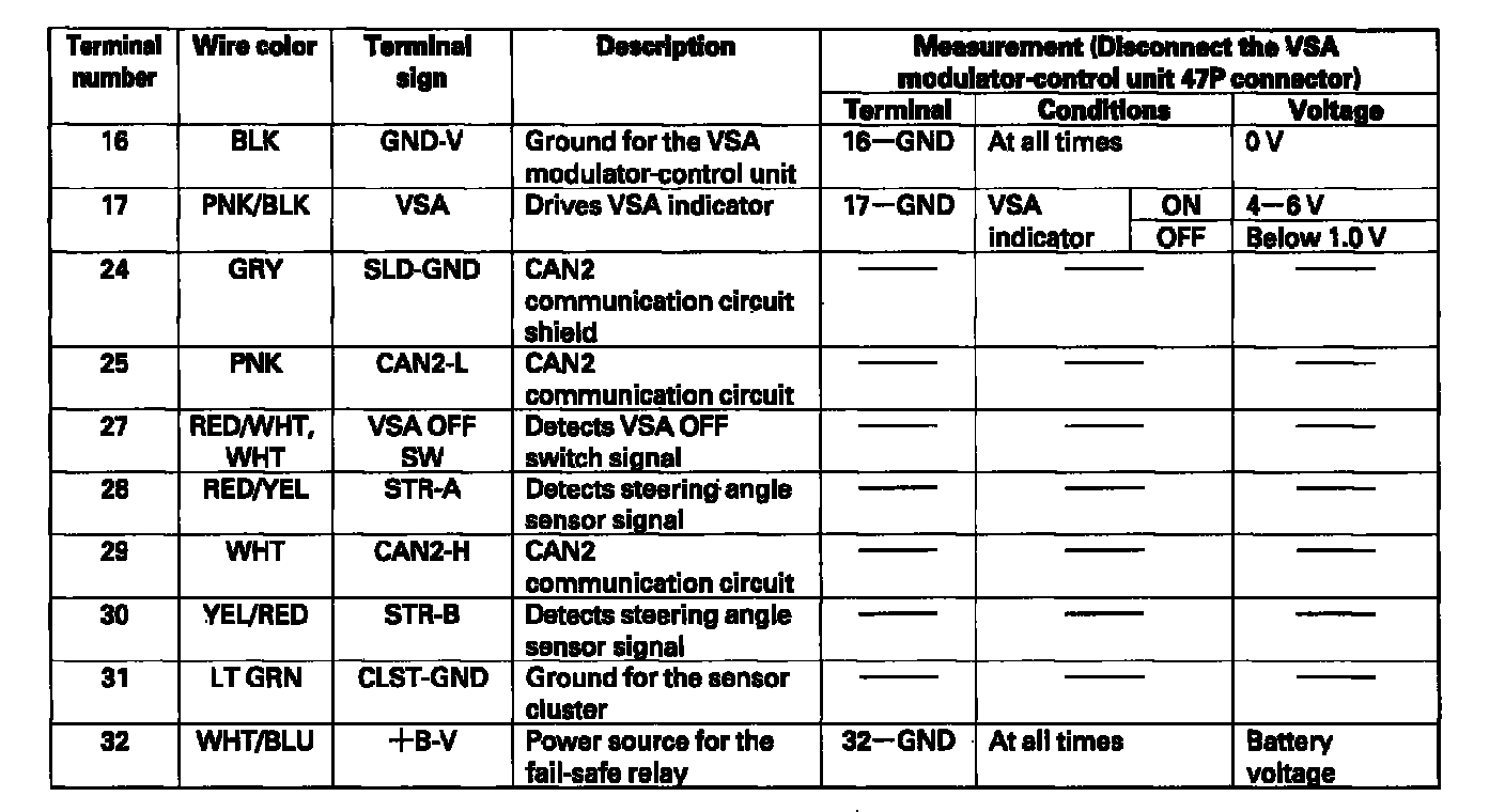 VSA Modulator-Control Unit Inputs and Outputs for 47P Connector: