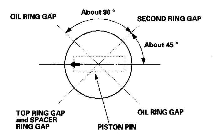 8. Position the ring end gaps as shown.