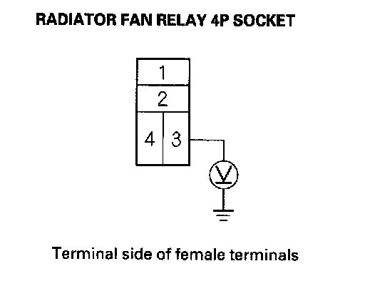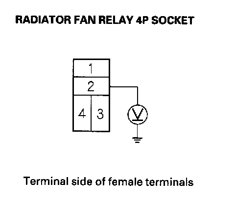 3. Measure the voltage between radiator fan relay 4P socket terminal No. 2 and body ground.