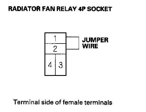 4. Connect radiator fan relay 4P socket terminals No. 1 and No. 2 with a jumper wire.