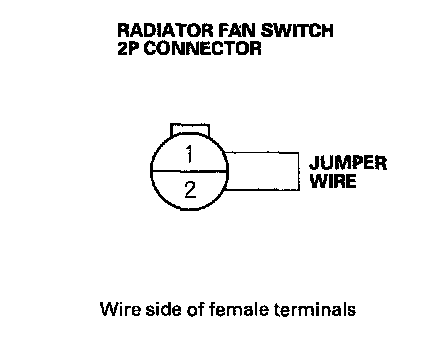 12. Connect radiator fan switch 2P connector terminals No. 1 and No. 2 with a jumper wire.