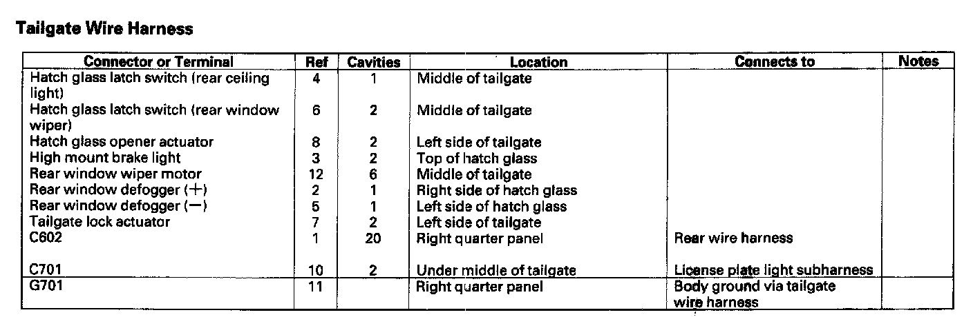 Tailgate Wire Harness: