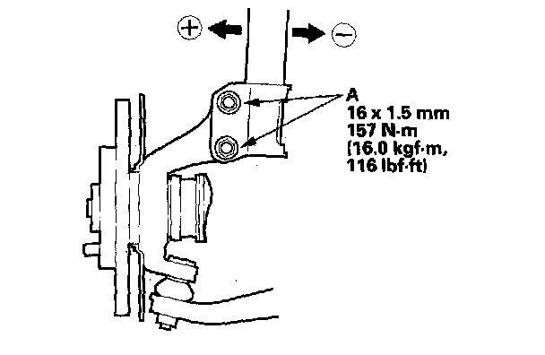 9. Replace the damper pinch bolts with the adjusting bolts (A), and adjust the camber angle,