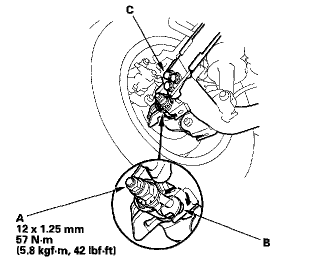 NOTICE: Do not loosen the special bolts (C) on the trailing arm.