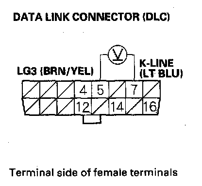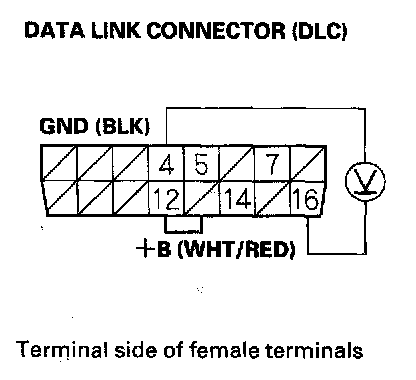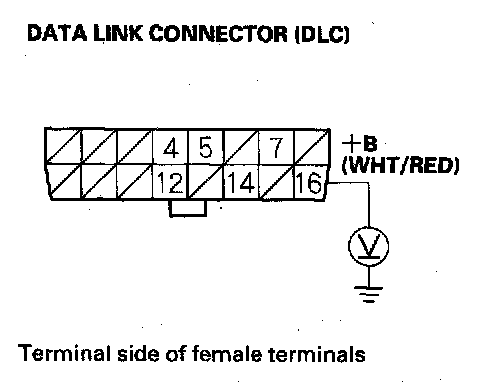 3. Measure voltage between DLC terminals No. 5 and No.16.