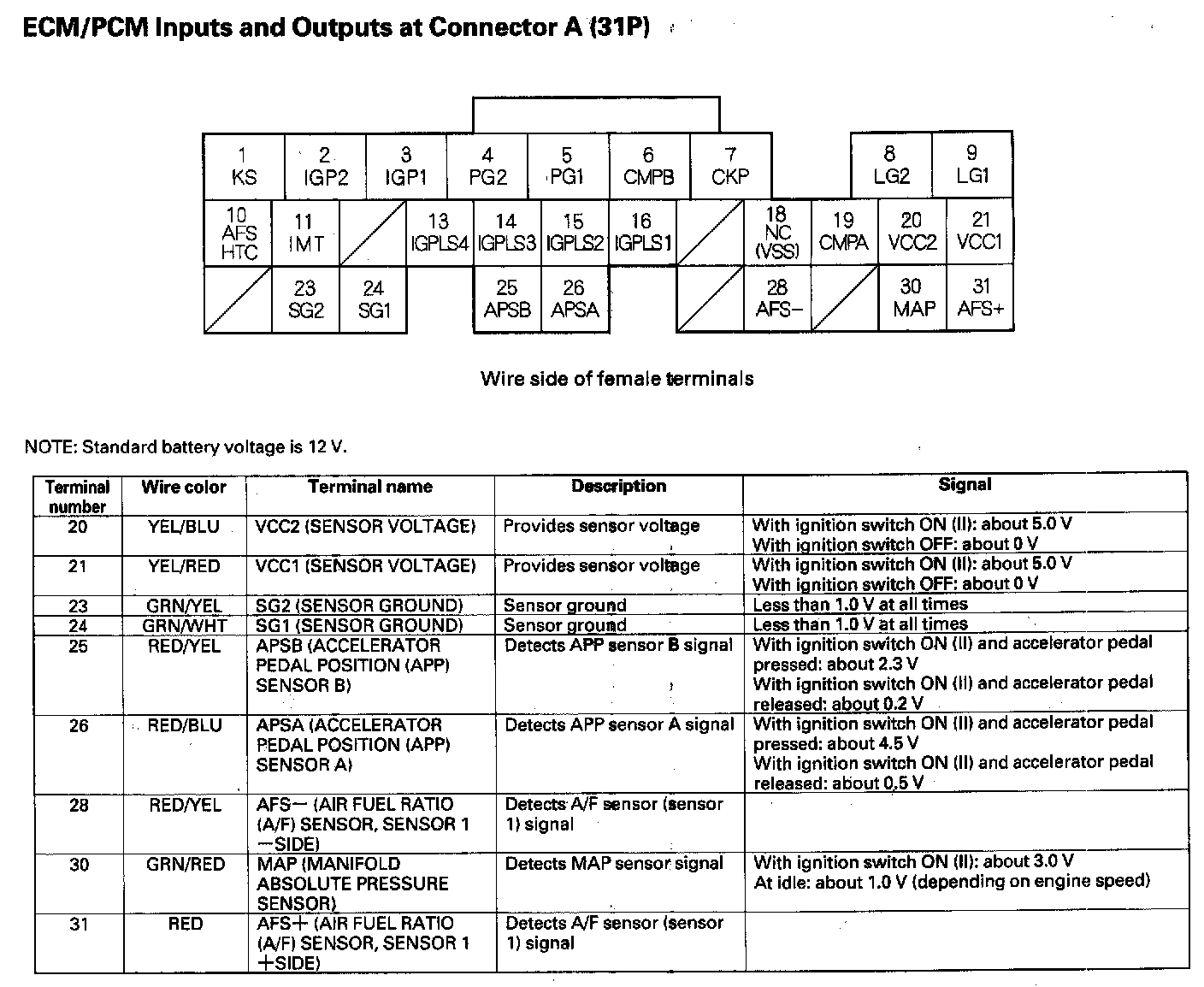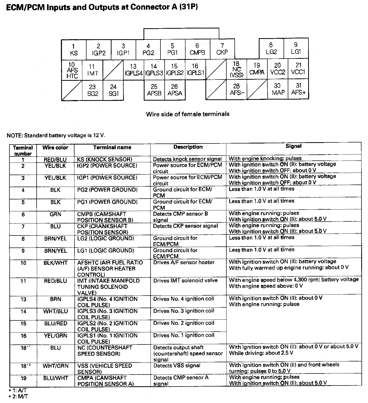ECM/PCM Inputs And Outputs At Connector A (31P) Part 1: