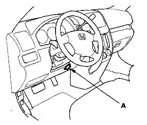 2. If the MIL stays on, connect the HDS to the data link connector (DLC) (A) located under the driver's side of the dashboard.
